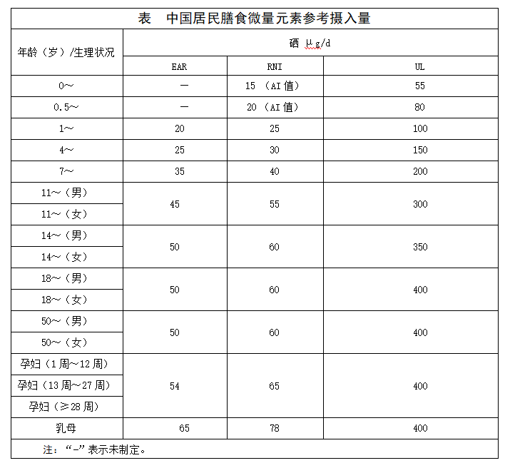 以下內容摘自《中國居民膳食營養素參考攝入量 第 3 部分:微量元素》(WS/T 578.3—2017)供消費者參考,提倡科學補硒。